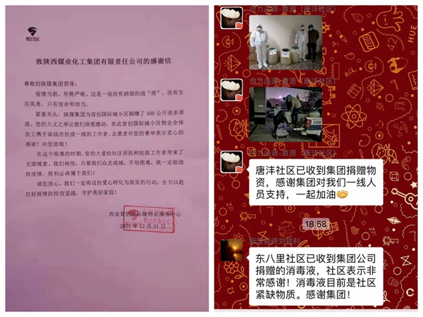 近日,不斷有雁塔、碑林、長安、高新、未央等區(qū)域的各個社區(qū),向陜煤集團送來感謝信,這不僅是社會群眾對陜煤志愿者們始終沖鋒在防疫一線的肯定,更是對陜煤集團不斷伸出援手,奉獻愛心,認真履行社會責任的鼓勵和支持。