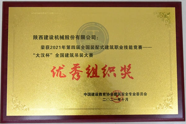 近日,在2021年第四屆全國裝配式建筑職業技能競賽——“大漢杯”全國建筑吊裝大賽中,陜建機股份公司獲得全國建設教育協會建筑安全專業委員會頒發的優秀組織獎,公司參賽代表隊員李亮亮獲得個人第16名的優異成績。