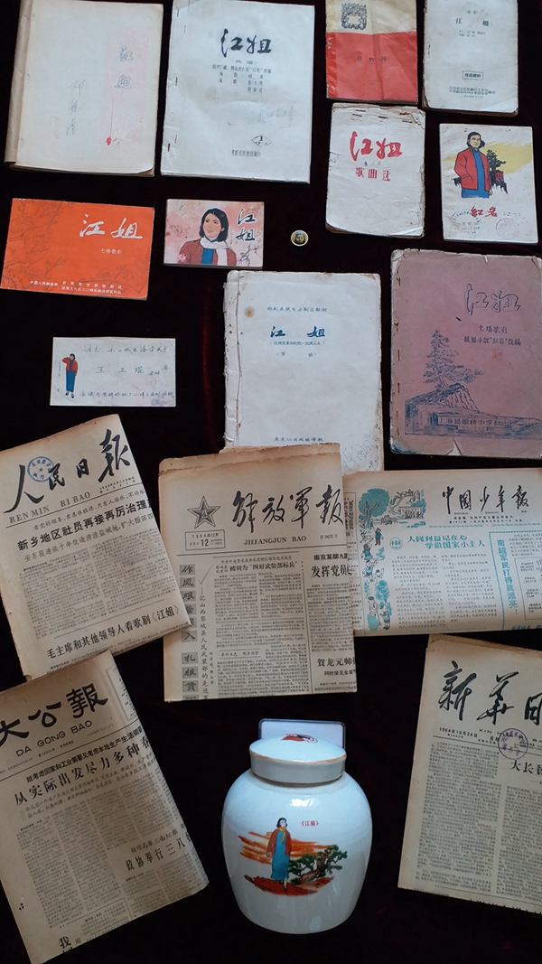 姜小平捐贈的這批關于江姐的文獻史料,是他10多年來潛心江姐專題收藏的全部藏品,包括目前發現最早講述江姐英雄事跡的單行本刊物;多種早期經典版本的《江姐》連環畫;《人民日報》頭版刊發毛主席等黨和國家領導人觀看歌劇《江姐》并接見演員們的珍貴照片;上世紀六七十年代,全國各地各劇種編排的《江姐》油印本資料;關于電影江姐的早期大開海報;瓷都江西景德鎮制作的江姐肖像瓷器罐;《江姐》歌劇經典唱片;重慶白公館制作的江姐紀念章等。