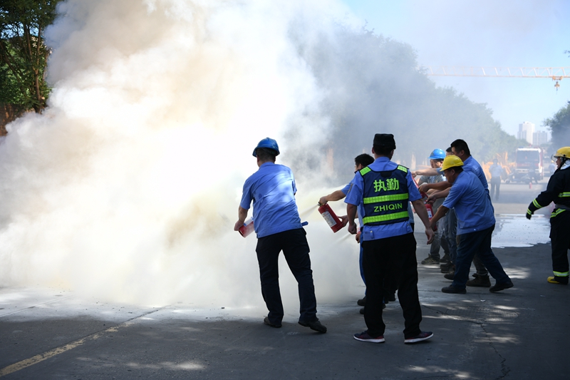 消防演練。6月17日上午,公司在裝配車間西門外開展了夏季安全消防演練活動。公司高管層領(lǐng)導、涇渭新城消防中隊隊員、西安實業(yè)陜建機工業(yè)園安保、全體義務消防隊員、各部門負責人、安全員及部分員工100余人參加演習。演練過程中,消防中隊教官為大家系統(tǒng)講解了著火時該怎樣逃生、如何滅火、如何使用干粉滅火器等基本知識,并分別演示了滅火器和消防栓的使用要領(lǐng),參與演練的各隊員認真執(zhí)行消防應急預案,踴躍參與,動作到位,干凈利落,掌握了噴淋滅火、消防栓滅火、干粉滅火器三種消防器材的使用方法,了解在危險中迅速逃生、自救、互救的基本方法,大大提高了員工實際應對和處置突發(fā)事件的能力,增強了員工的消防安全意識,達到了預期的效果。