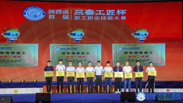 陜西省總工會二級巡視員余華,陜西省總工會職工創(chuàng)新技術(shù)協(xié)作中心主任賀娟、副主任段盟,榆林市總工會副主席劉煜,榆林市總工會經(jīng)濟法律保障部部長慕東霞,神木市總工會常務副主席王嘉華,陜煤集團人力資源部總經(jīng)理李聰,陜煤集團神南產(chǎn)業(yè)發(fā)展公司黨委書記、董事長喬少波,以及相關(guān)單位領(lǐng)導、裁判員、參賽選手、新聞媒體記者等參加了頒獎儀式。