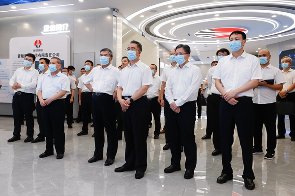 揭牌儀式后,黃玉治一行實地參觀了重點實驗室建設情況,并來到黃陵礦業公司智慧中心,對該公司智能決策云平臺、智能綜采系統、AI+NOSA安全風險智能管控系統、智慧電廠等全產業鏈相關平臺、系統的建設應用情況進行了實地了解。