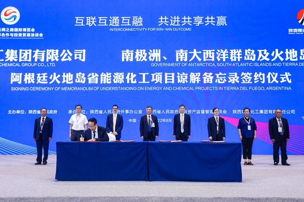 會(huì)上,阿根廷駐華大使牛望道及有關(guān)企業(yè)就阿根廷地方政府與陜西省友城結(jié)好及相關(guān)領(lǐng)域務(wù)實(shí)合作進(jìn)行推介、西咸新區(qū)就整體項(xiàng)目特別是足球中心與阿合作進(jìn)行交流對接。阿根廷火地島省政府與陜煤集團(tuán)所屬陜西化工集團(tuán)簽署關(guān)于支持在火地島省開展能源化工項(xiàng)目的諒解備忘錄;陜煤集團(tuán)與富海集團(tuán)簽署印尼新絲路產(chǎn)業(yè)園項(xiàng)目框架合作協(xié)議;陜煤集團(tuán)榆林化學(xué)榆東科技有限責(zé)任公司與日本宇高株式會(huì)社簽署煤炭分質(zhì)利用制化工新材料示范項(xiàng)目50萬噸/年DMC工程合作協(xié)議。