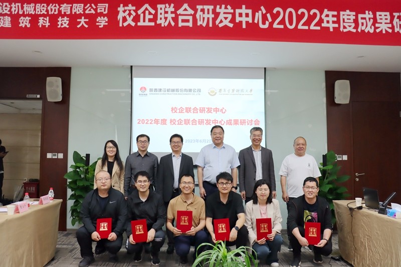 日前,陜建機股份與西安建筑科技大學(xué)校企聯(lián)合研發(fā)中心(以下簡稱“研發(fā)中心”)舉辦了“2022年度成果研討會”。西安建筑科技大學(xué)機電工程學(xué)院黨委書記吳昊、院長朱麗華、副院長李玲;陜建機股份黨委書記、董事長楊宏軍、副總經(jīng)理賀衛(wèi)東、技術(shù)顧問劉帝芳、工程機械研究院技術(shù)骨干參加會議。