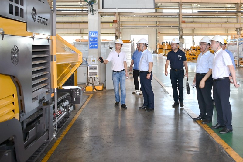 在楊宏軍、副總經理范勖成、路機事業部相關負責人的陪同下,宋執壽參觀了陜建機股份企業文化展示中心、裝配、機加工、涂裝噴粉線等生產車間,對公司悠久的歷史文化、先進的生產管理模式、可靠的產品質量等給予了充分肯定。在新產品SUM7200D瀝青攤鋪機前,宋執壽得知攤鋪機功能有很多創新,自主開發了電加熱機械熨平板,解決了大寬度、大厚度攤鋪、薄層攤鋪等高難度問題,所有這些創新都體現了陜建機股份用戶至上、市場為先的理念。