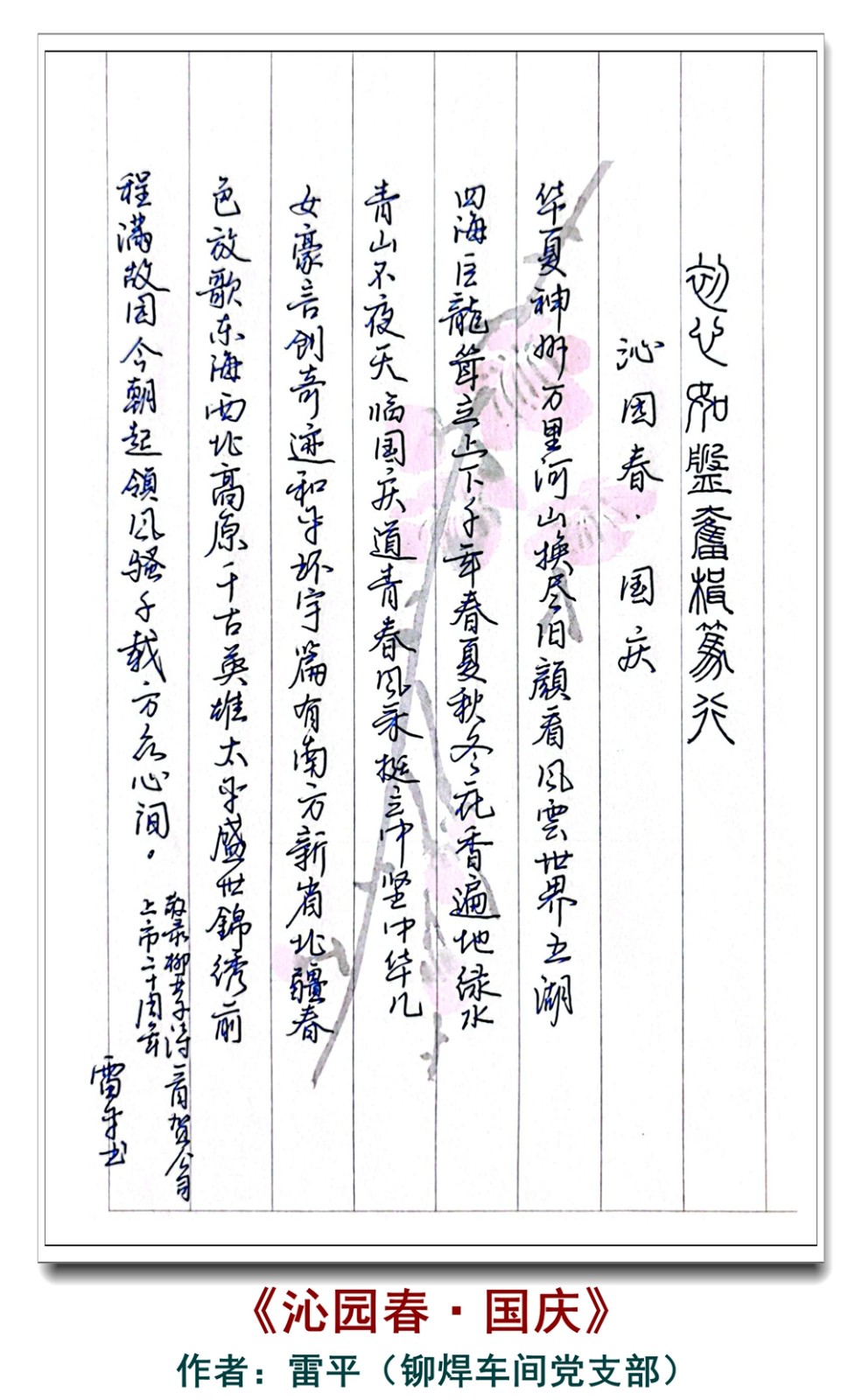 2024年是中華人民共和國成立75周年,亦是陜建機(jī)股份成立70周年及上市20周年,公司全體員工聚焦提質(zhì)增效和轉(zhuǎn)型發(fā)展的核心任務(wù),深刻體會新中國成立75周年、公司成立70周年以及上市20周年所帶來的巨大變化和輝煌成就,組織開展“凝心聚力謀發(fā)展 砥礪奮進(jìn)新征程”系列主題活動,廣泛征集了包括書畫、剪紙、攝影、詩歌、散文等多種形式的作品,全面展示廣大職工在文化建設(shè)上的成果,提升文化的傳播力和影響力。近期,公司網(wǎng)站及公眾號特推出線上職工優(yōu)秀書法、美術(shù)、攝影、文學(xué)等作品展覽,展現(xiàn)廣大職工對祖國、對新時代的深情厚意,激勵廣大職工沖刺“十四五”、奮前新征程,創(chuàng)造新業(yè)績,共同譜寫公司高質(zhì)量轉(zhuǎn)型發(fā)展的新篇章。