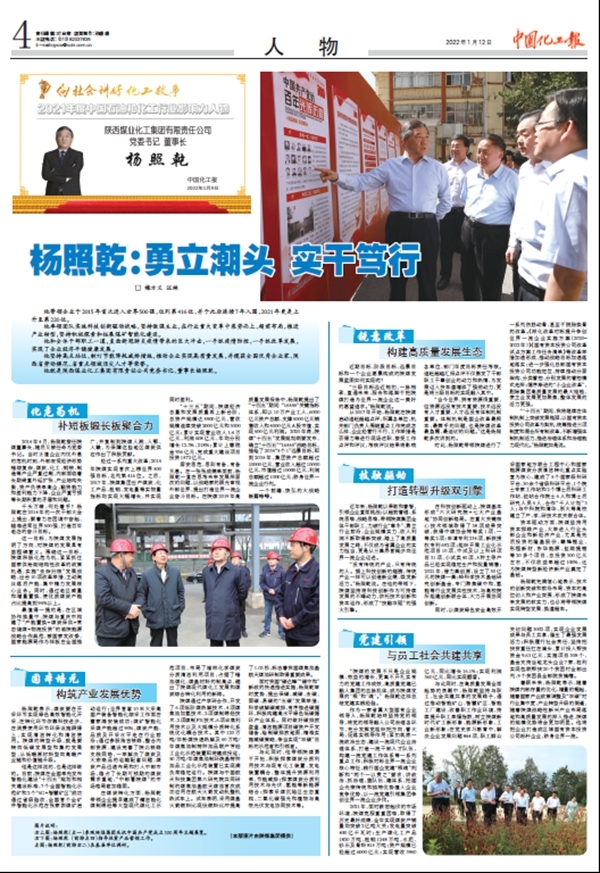 中國化工報(bào) | 楊照乾:勇立潮頭 實(shí)干篤行