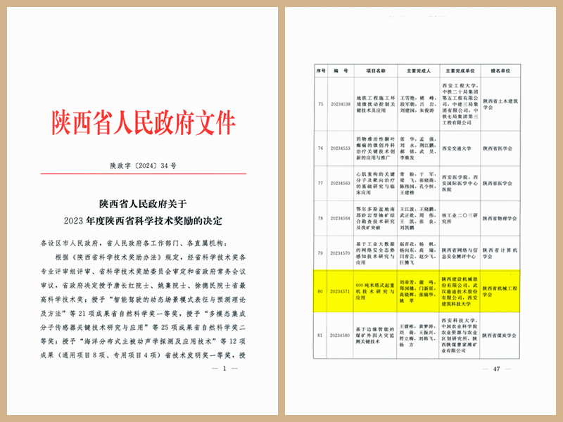喜訊:陜建機(jī)股份榮獲陜西省科技進(jìn)步獎