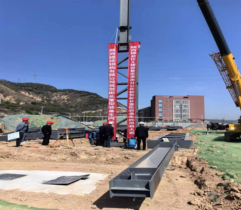 建設(shè)鋼構(gòu)順利完成陜西彬長礦區(qū)服務(wù)中心重型裝備修理車間工程項(xiàng)目首根鋼柱吊裝任務(wù)