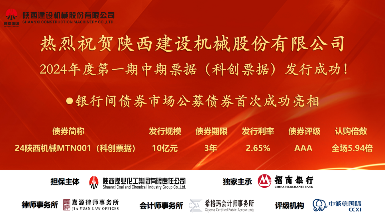 建設(shè)機(jī)械2024年度第一期中期票據(jù)(科創(chuàng)票據(jù))成功發(fā)行!