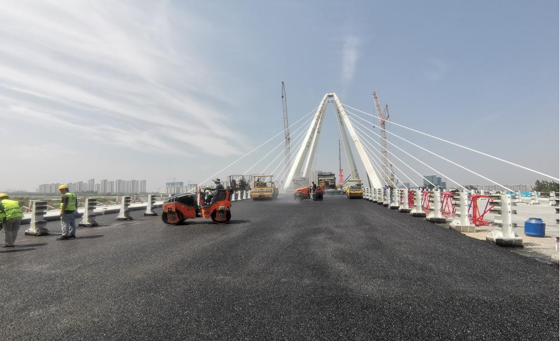 建設(shè)機(jī)械化高質(zhì)量完成咸陽高科一路跨渭河大橋路面施工任務(wù)