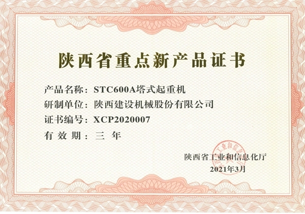 陜建機(jī)股份:STC600A塔機(jī)被認(rèn)定為“陜西省重點(diǎn)新產(chǎn)品”