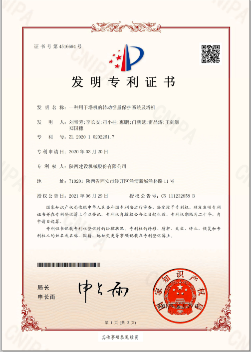近日,陜建機(jī)股份公司《一種用于塔機(jī)的轉(zhuǎn)動(dòng)慣量保護(hù)系統(tǒng)及塔機(jī)》獲國家知識(shí)產(chǎn)權(quán)局頒發(fā)的發(fā)明專利證書。作為基建施工過程中關(guān)鍵的設(shè)備,塔式起重機(jī)的工況直接影響著建筑產(chǎn)品的安全性與可靠性。現(xiàn)有塔機(jī)在回轉(zhuǎn)控制中,大多數(shù)采用的技術(shù)是通過在回轉(zhuǎn)過程中增加渦流系統(tǒng)來提高回轉(zhuǎn)運(yùn)動(dòng)過程穩(wěn)定性,以及保護(hù)大臂的作用。這種控制方式無法反饋,一旦回轉(zhuǎn)機(jī)構(gòu)出現(xiàn)問題,則會(huì)導(dǎo)致塔機(jī)在回轉(zhuǎn)過程中大臂出現(xiàn)較大的頓挫、反彈、甚至對(duì)大臂造成永久性破壞。針對(duì)現(xiàn)有技術(shù)中的技術(shù)問題,本發(fā)明提供了一種用于塔機(jī)的轉(zhuǎn)動(dòng)慣量保護(hù)系統(tǒng)及塔機(jī),能夠有效避免...