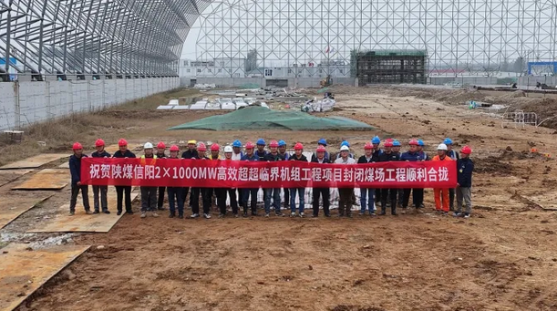 陜煤信電2×1000MW機組工程封閉煤場大跨度網架項目順利合攏